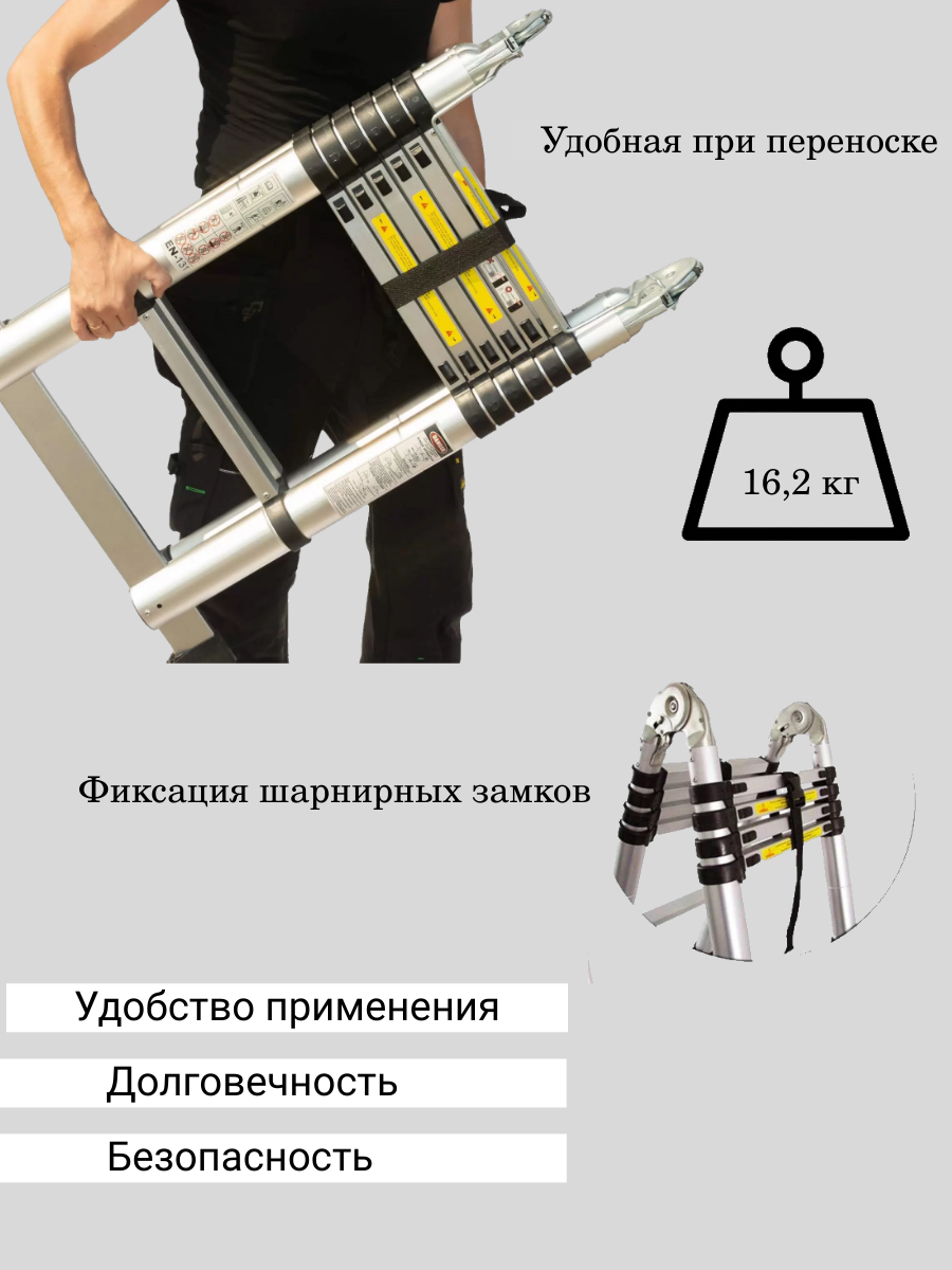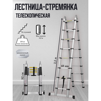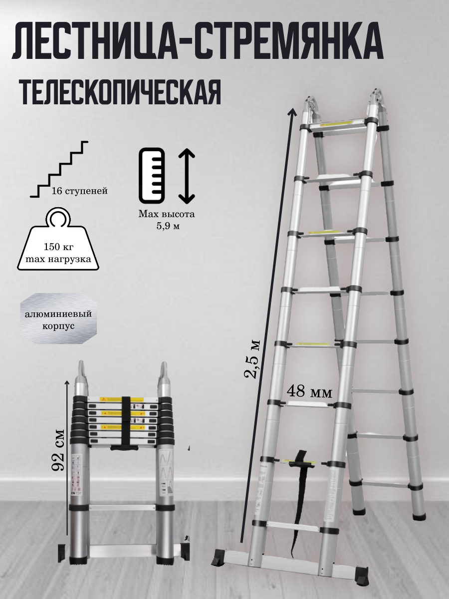 Телескопическая стремянка, складная, двухсторонняя, алюминий, серебристая, 2,5 м/ 5,0 м: сравнение цен, характеристики, фото, актуальное наличие и цены.