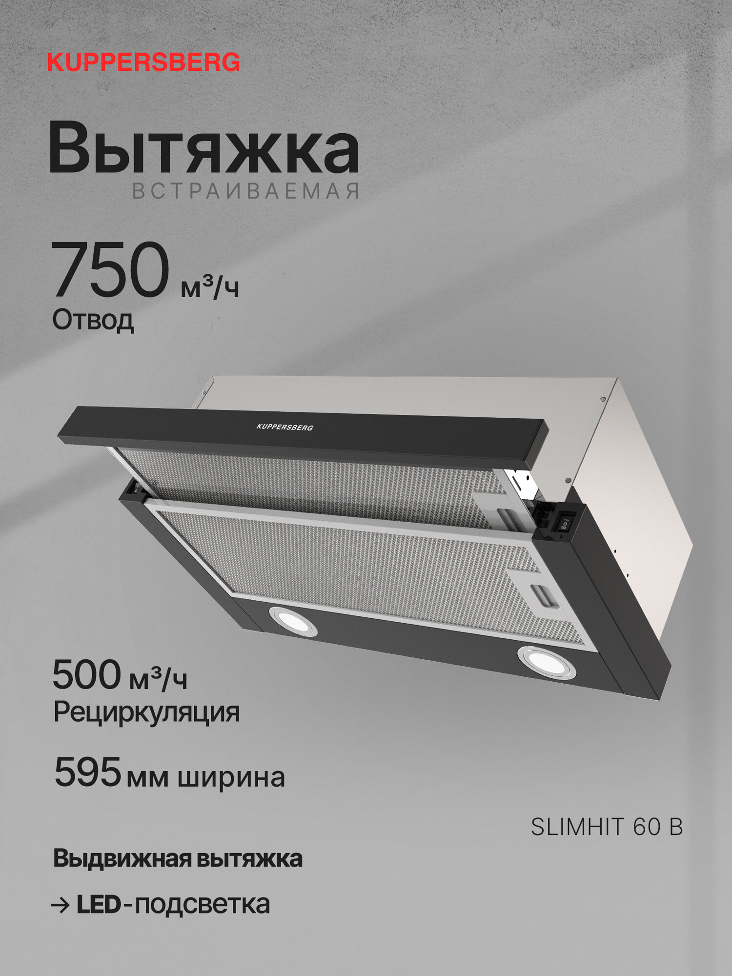 Вытяжка Kuppersberg SLIMHIT 60 B, черный (Модификация 2025 года): сравнение цен, характеристики, фото, актуальное наличие и цены.