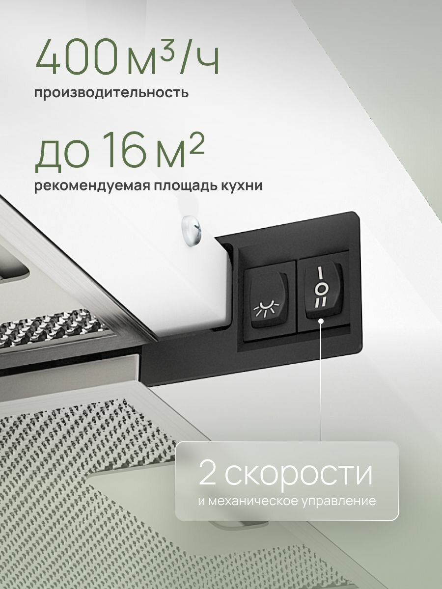 Телескопическая вытяжка ELIKOR Интегра 50П-400-В2Л 50 см, 400 м3/ч, 2 скорости, режимы отвод и циркуляция, алюминиевый жировой фильтр и 2 лампы, белый: сравнение цен, характеристики, фото, актуальное наличие и цены.