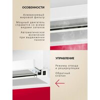 Телескопическая вытяжка Hansa OTP6251WH, 60 см, механическое управление, 2 скорости, режимы отвода и рециркуляции, светодиодная подсветка, белая