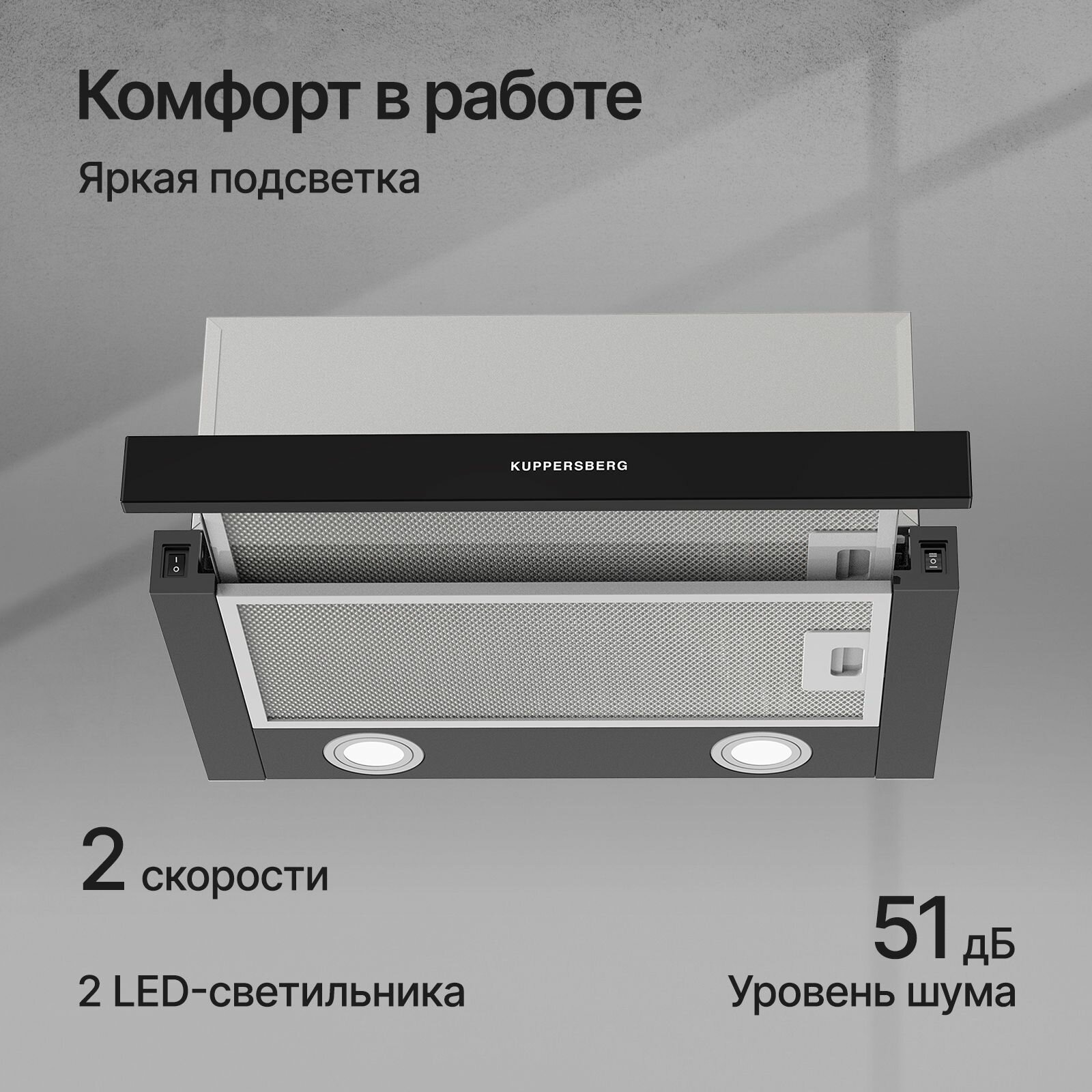Телескопическая вытяжка Kuppersberg встраиваемая SLIMHIT 50 BG (Модификация 2025 года)