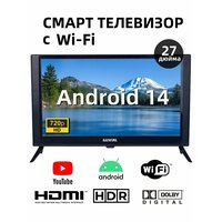 Телевизор 27 дюйма с Android 14, VA-матрица, 20 Вт, Wi-Fi, HDMI, USB, DVB-T/T2, DVB-S/S2: сравнение цен, характеристики, фото, актуальное наличие и цены.