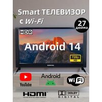 Телевизор 27 дюйма с Android 14, VA-матрица, 20 Вт, Wi-Fi, HDMI, USB, DVB-T/T2, DVB-S/S2: сравнение цен, характеристики, фото, актуальное наличие и цены.