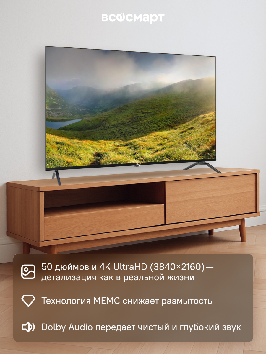 Телевизор 50″ со Смарт ТВ Hikers 50HTU01 4K UHD, Smart TV, Wi Fi, Bluetooth, TIZEN OS, MEMC, Dolby Audio, HDR, DLED: сравнение цен, характеристики, фото, актуальное наличие и цены.