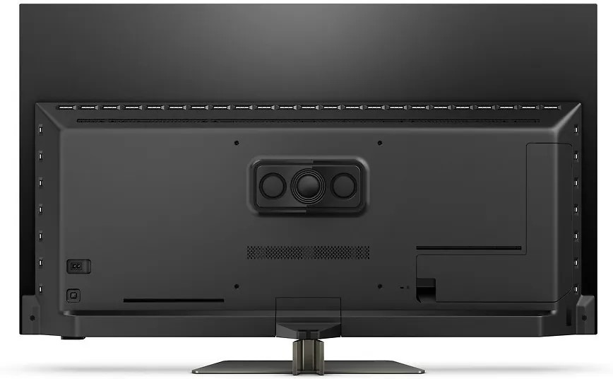 Поворотная и геометрическая матовая хромированная подставка великолепна, в дополнение к этому Ambilightia может использовать атмосферу освещения при выключенном экране. Пульт дистанционного управления телевизором можно загрузить по беспроводной сети. В нем используются переработанный пластик, упаковка, переработанный картон, сертифицированный FSC, и бумага из переработанных материалов weight of materials.