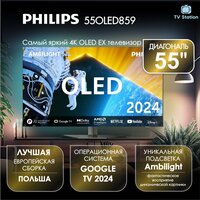 Philips OLED859 — это телевизор с отличным качеством изображения, оснащённый Philips OLED-телевизором с подсветкой Ambilight. Телевизор с операционной системой Google TV, OLED-панелью с частотой обновления 144 Гц, системой P5 AI Perfect-picture, а также поддержкой большинства популярных форматов HDR. Неограниченное количество просмотров в режиме бесконечного чёрного выводит просмотр на совершенно новый уровень.