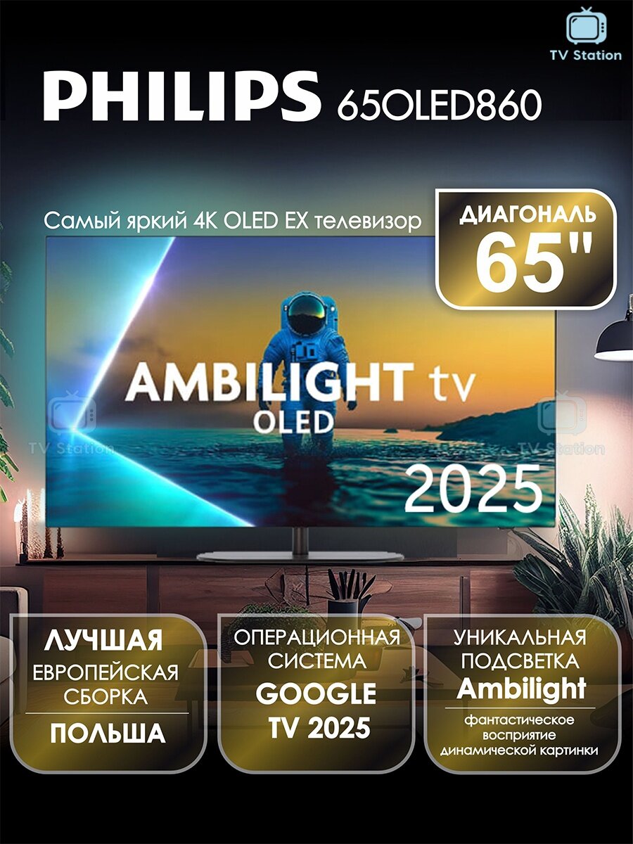 Купить Телевизор 65 Philips 65OLED860, OLED EX, 4K UHD, Google TV, Ambilight с доставкой по всей России. Телевизор 65 Philips 65OLED860, OLED EX, 4K UHD, Google TV, Ambilight: сравнение цен, характеристики, фото, актуальное наличие и цены.