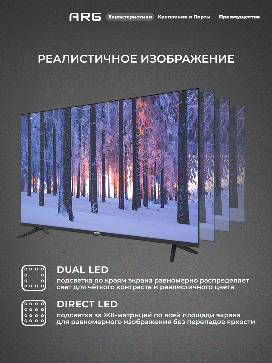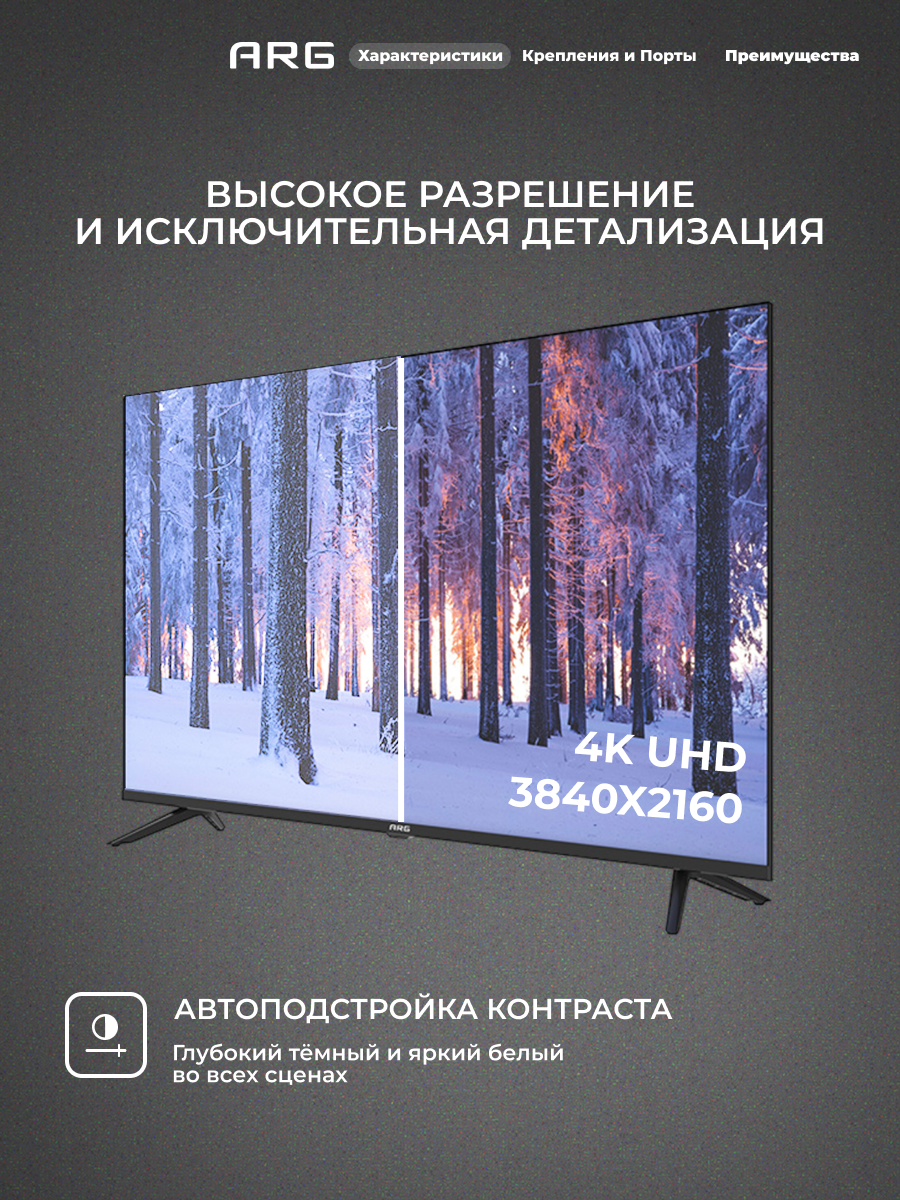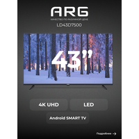 Телевизор ARG LD43D7500 - это современное и функциональное устройство, которое станет незаменимым помощником в вашей гостиной или спальне. Телевизор ARG LD43D7500 оснащен LED-экраном, который обеспечивает яркое и четкое изображение. Благодаря этому, вы сможете наслаждаться любимыми фильмами и сериалами в высоком качестве. Устройство поддерживает множество форматов видео, включая HD, Full HD и 4K. Это позволяет смотреть фильмы и сериалы в высоком качестве без потери качества изображения. Телевизор ARG LD43D7500 имеет встроенный тюнер DVB-T2, который позволяет принимать цифровые и аналоговые каналы без использования дополнительного оборудования. Благодаря наличию HDMI и USB разъемов, вы сможете подключить к телевизору различные устройства, такие как игровые приставки, медиаплееры и внешние накопители. Это позволит вам смотреть фильмы, фотографии и слушать музыку прямо с вашего накопителя. Телевизор ARG LD43D7500 имеет удобный и понятный интерфейс, который позволяет быстро и легко настроить устройство под свои предпочтения. В целом, телевизор ARG LD43D7500 - это современное, функциональное и удобное устройство, которое станет отличным выбором для просмотра фильмов, сериалов и прослушивания музыки.