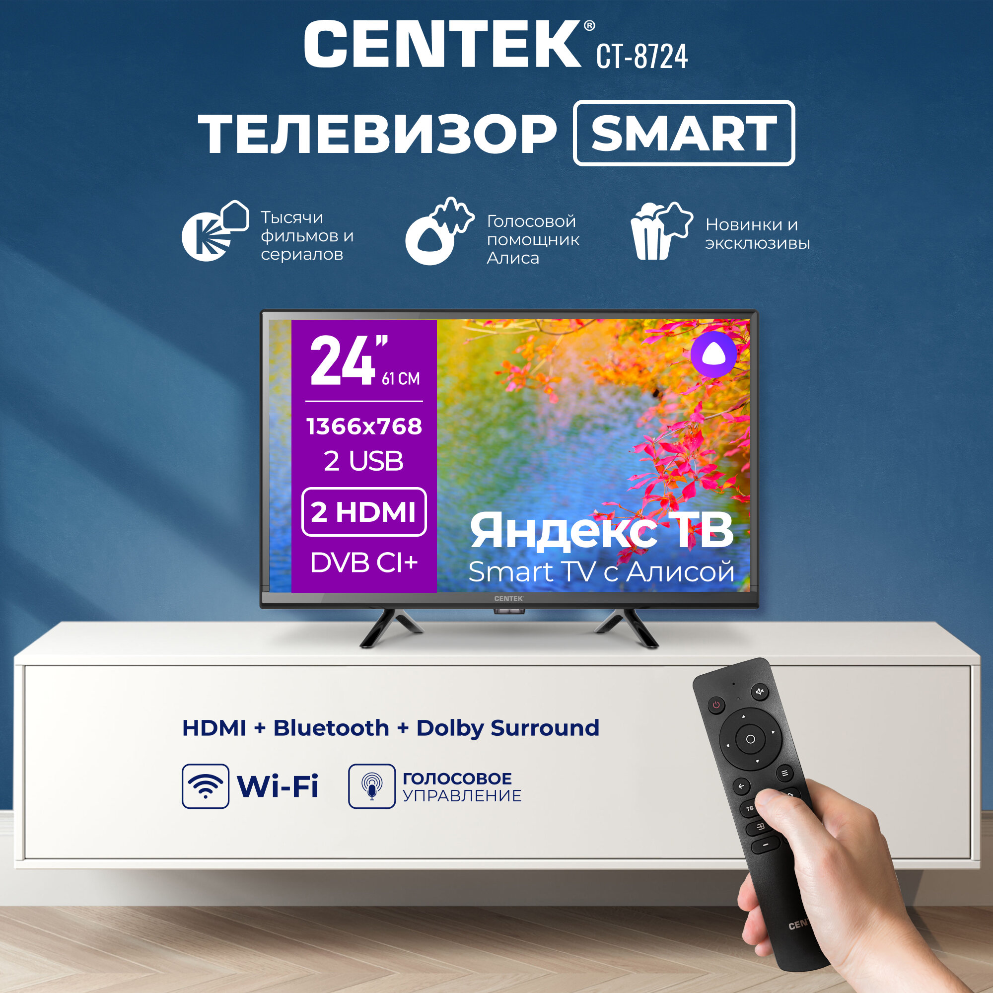Купить Телевизор CENTEK CT-8724 черный 24_LED SMART, HD, Wi-Fi, Bluetooth, YaOS с доставкой по всей России. Телевизор CENTEK CT-8724 черный 24_LED SMART, HD, Wi-Fi, Bluetooth, YaOS: сравнение цен, характеристики, фото, актуальное наличие и цены.