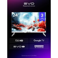 Купить Evo Телевизор 24 Google TV, Wi-Fi, Bluetooth, голосовое управление, объемный звук, онлайн-кинотеатр с evo TV, HD, белый с доставкой по всей России.