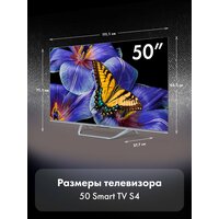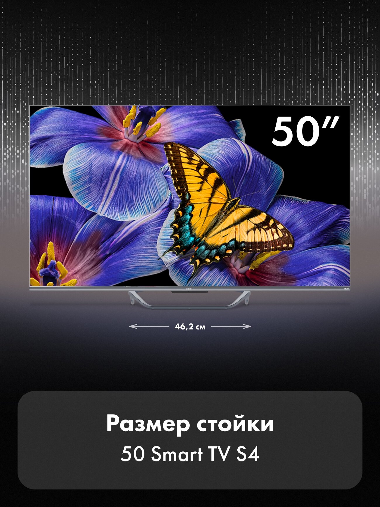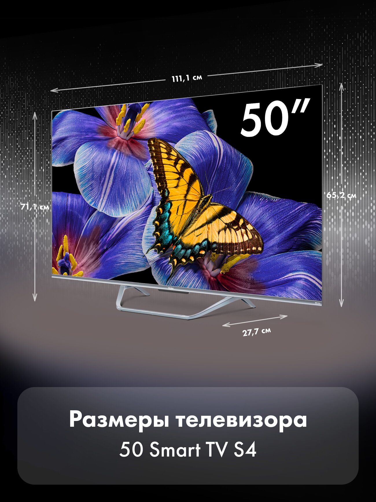 Телевизор Haier 50 Smart TV S4 с безрамочным дизайном работает под управлением операционной системы Android TV с удобным интерфейсом, голосовым поиском и управлением Google assistant, доступом к контенту от ivi, Кинопоиск, OKKO, Smart TV, Google Play Store, Youtube, стриминговым сервисам. Корпус весом около 9 кг можно разместить на комплектной опорной подставке или закрепить на стене с помощью VESA 300х300 мм. Управление осуществляется с помощью пульта или голосом.
