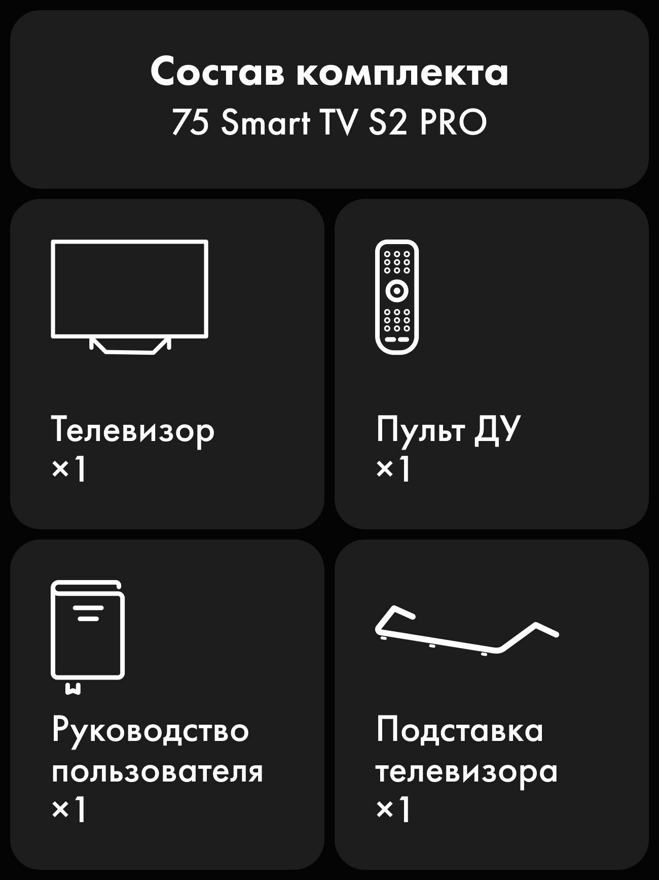 • Диагональ: 75 дюймов (190 см)