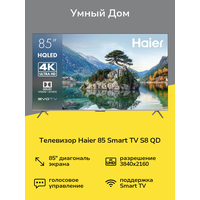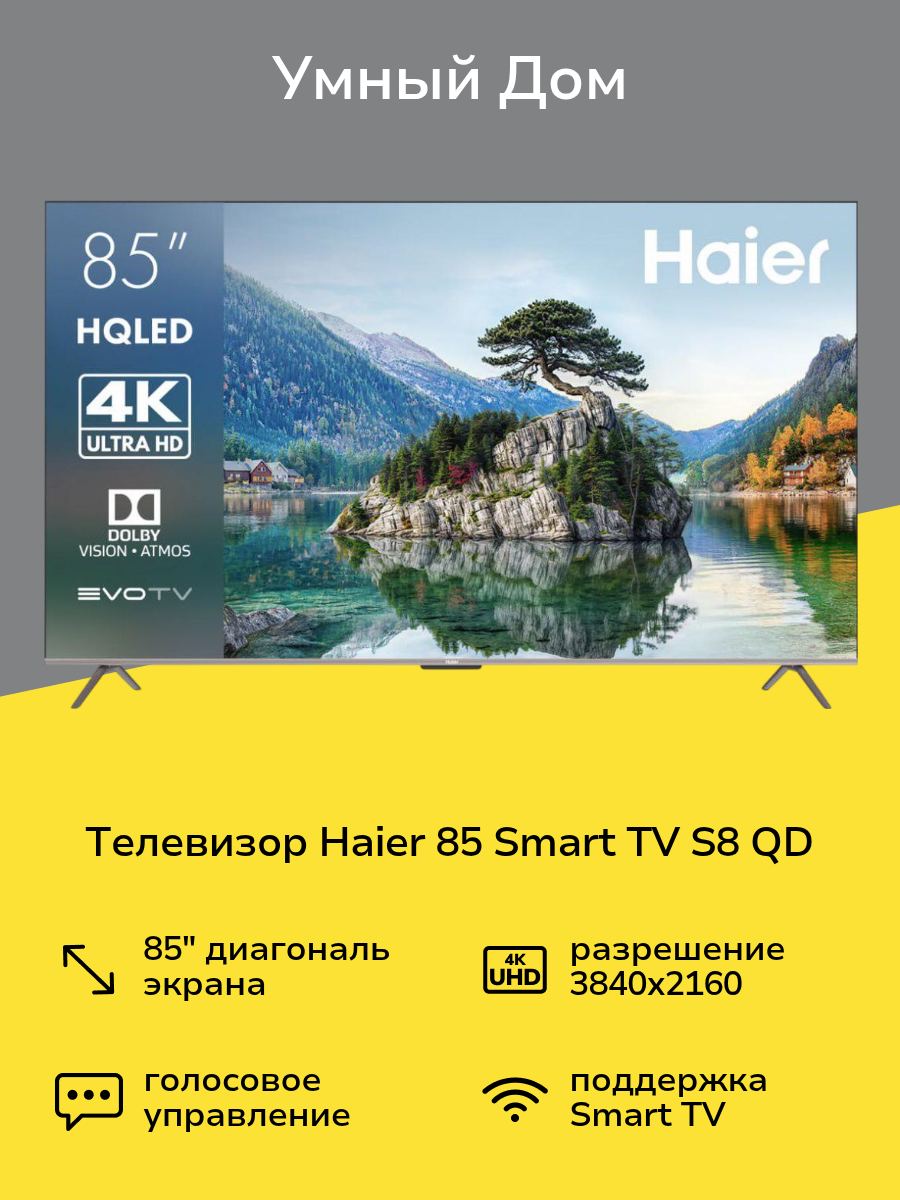 Купить Телевизор Haier 85 Smart TV S8 QD, Android TV, диагональ 85″, 4К с доставкой по всей России.