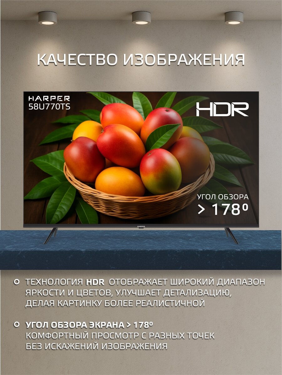 Телевизор HARPER 58U770TS, SMART (Google TV), диагональ 58″ / Гарантия 2 года, черный: сравнение цен, характеристики, фото, актуальное наличие и цены.