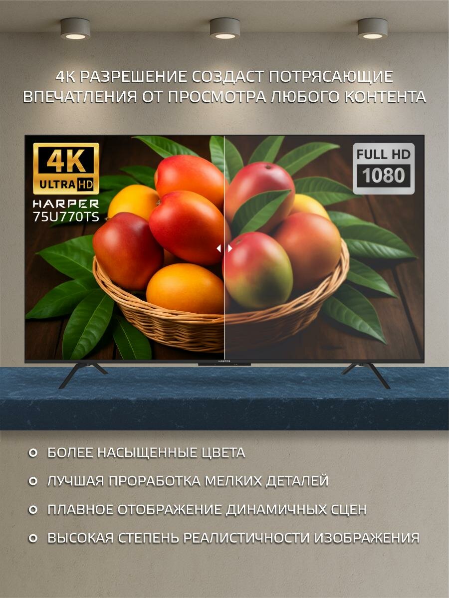 Телевизор HARPER 75U770TS, SMART (Google TV), диагональ 75″ / Гарантия 2 года, черный: сравнение цен, характеристики, фото, актуальное наличие и цены.