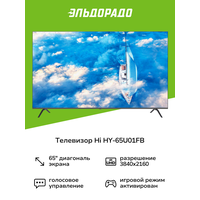 Телевизор Hi HY-65U01FB оборудован акустической системой Dolby Digital Plus общей мощностью 20 Вт. Для улучшения качества картинки применена технология цифрового шумоподавления.