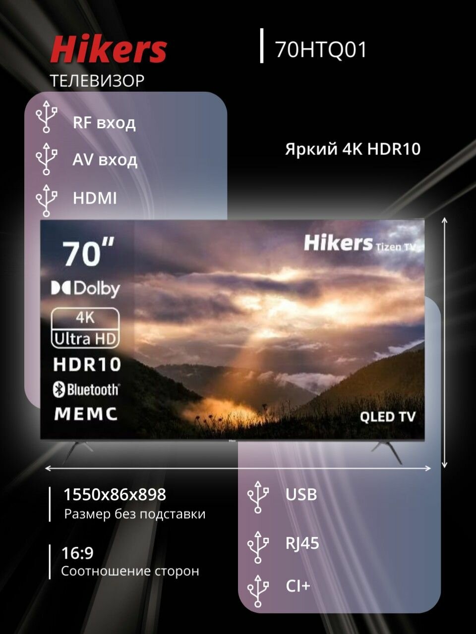 Купить Телевизор Hikers 70HTQ01, 70 дюймов, 4K Ultra HD, смарт ТВ, Tizen, черный с доставкой по всей России. Телевизор Hikers 70HTQ01, 70 дюймов, 4K Ultra HD, смарт ТВ, Tizen, черный: сравнение цен, характеристики, фото, актуальное наличие и цены.
