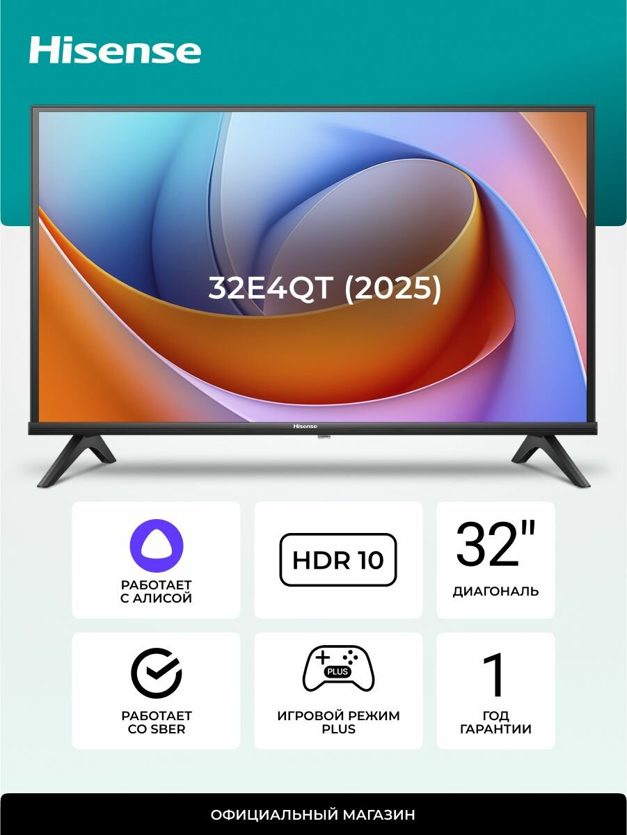 Телевизор Hisense 32E4QT 32 дюйма Смарт ТВ HD с Wi-Fi, HDMI, USB, Dolby Audio, игровым режимом: сравнение цен, характеристики, фото, актуальное наличие и цены.