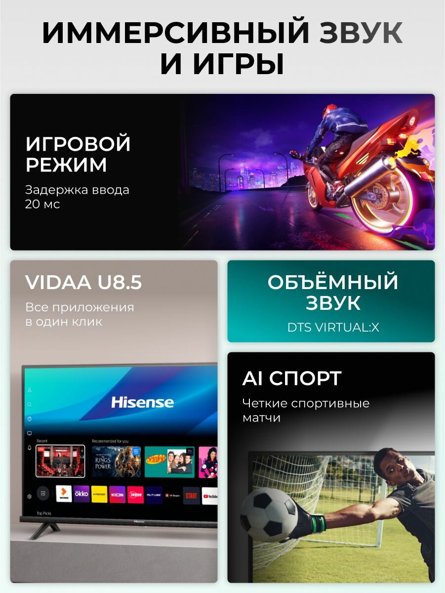 Купить Телевизор Hisense 32E4QT 32 дюйма Смарт ТВ HD с Wi-Fi, HDMI, USB, Dolby Audio, игровым режимом с доставкой по всей России.