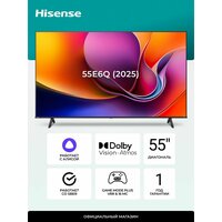 Телевизор Hisense 55E6QT 55 дюймов с Смарт ТВ, Wi-Fi, 4K UHD, Dolby Vision, игровым режимом, голосовым управлением: сравнение цен, характеристики, фото, актуальное наличие и цены.