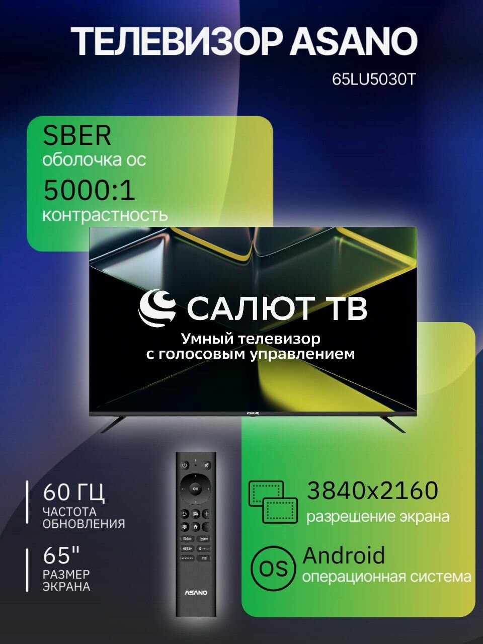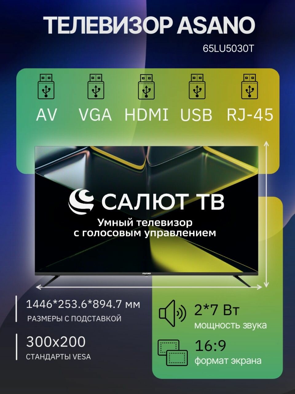 Телевизор Asano 65″ 65LU5030T, черный: сравнение цен, характеристики, фото, актуальное наличие и цены.