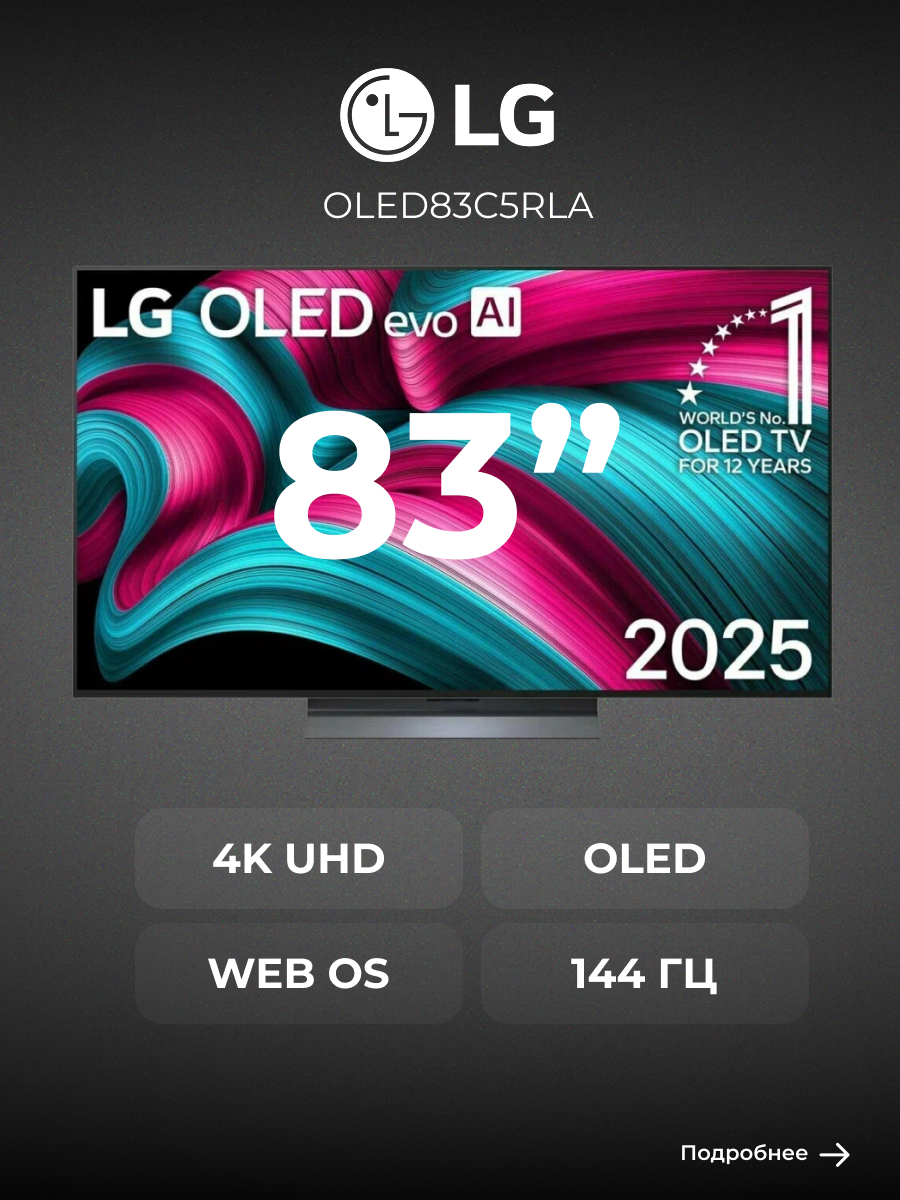 LG телевизор OLED83C5RLA, диагональ 83″, разрешение 4K UHD, технология экрана OLED, частота обновления 144 Гц, черный: сравнение цен, характеристики, фото, актуальное наличие и цены.