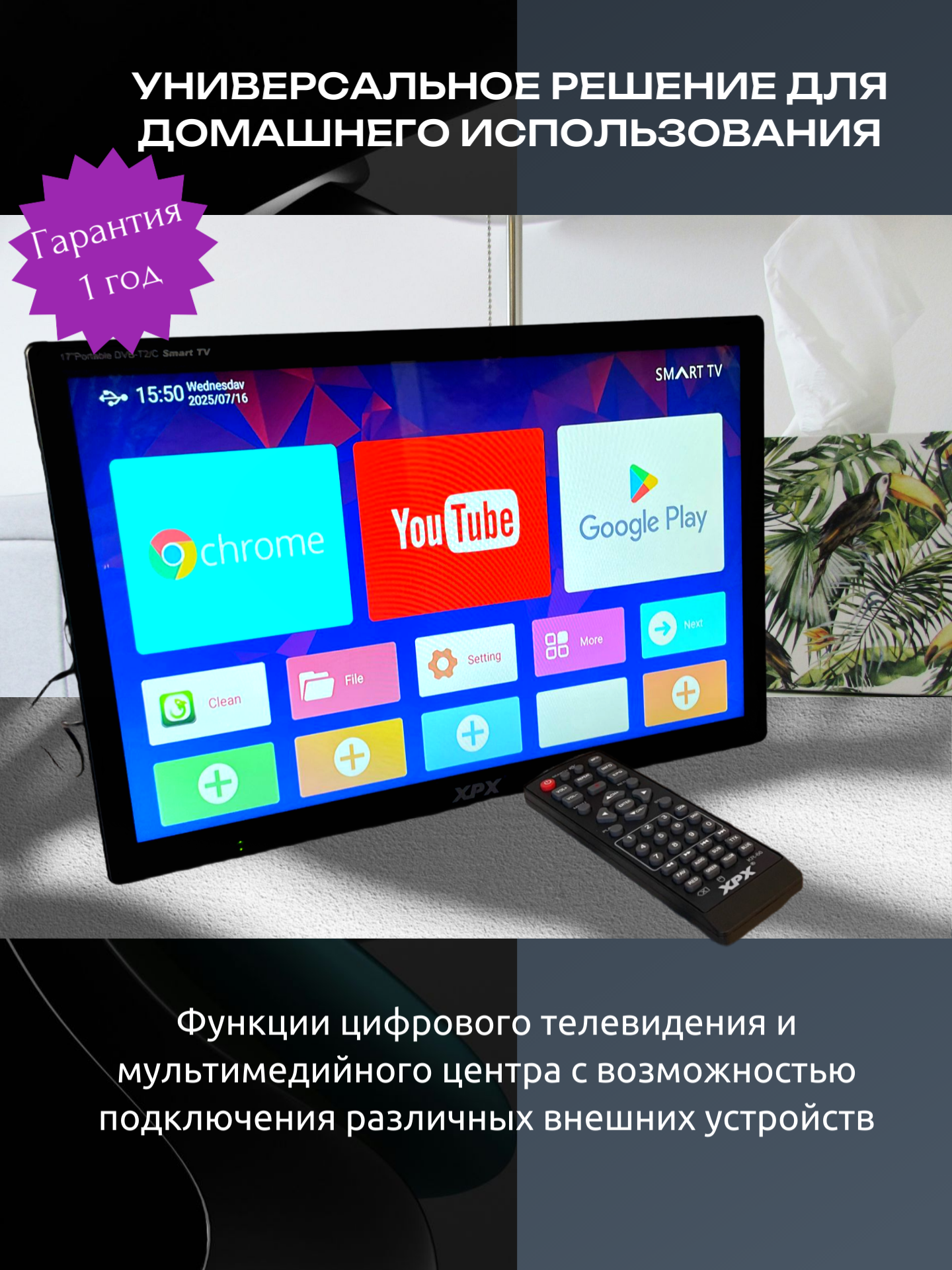 Закажите прямо сейчас и получите полный комплект аксессуаров! Современный Smart TV на Android открывает доступ к миру развлечений! Встроенный аккумулятор позволит наслаждаться любимыми программами даже без доступа к электросети!
