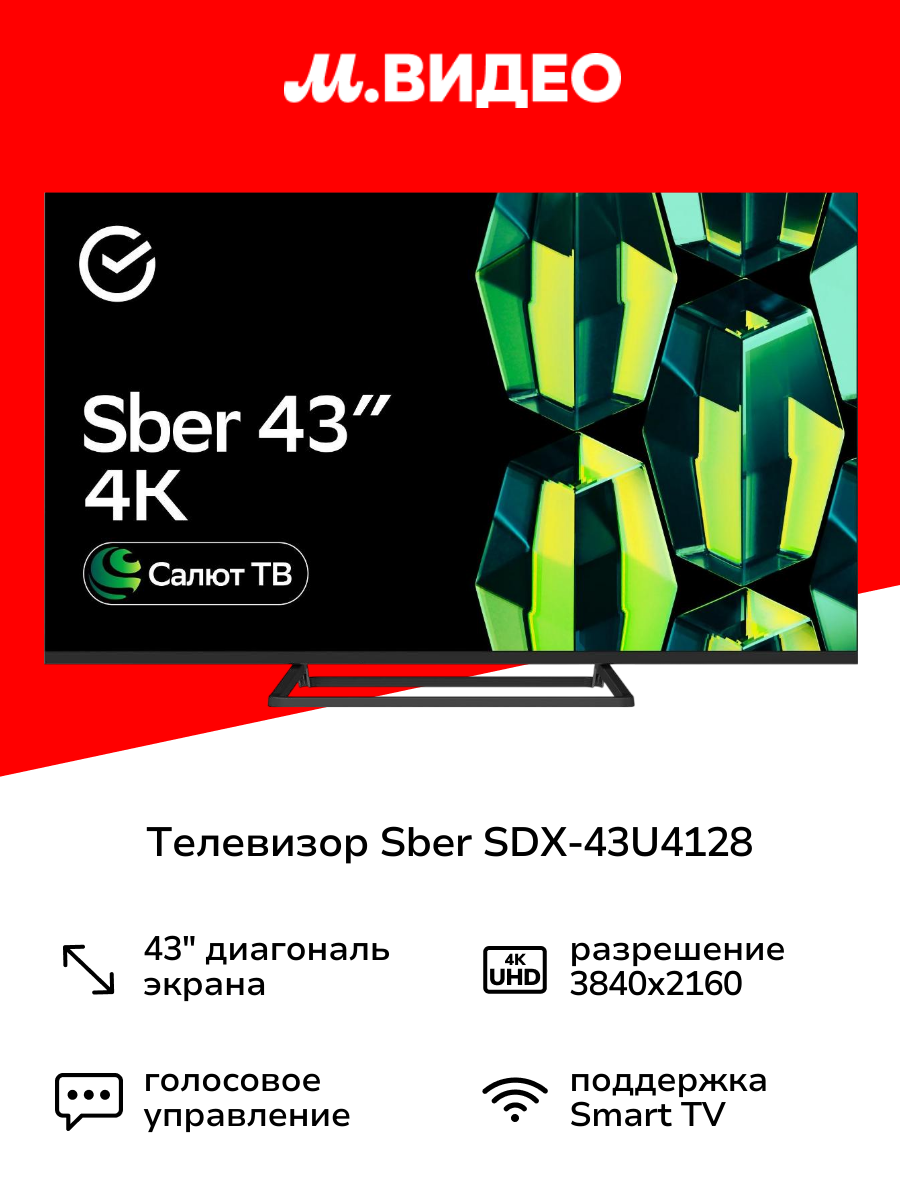 Умный телевизор Sber из новой коллекции на стильной моноподставке. Яркий UHD-экран 43″, безрамочный корпус и увеличенная оперативная память для повышенного быстродействия. Плюс улучшенный звук и двухдиапазонный Wi-Fi.