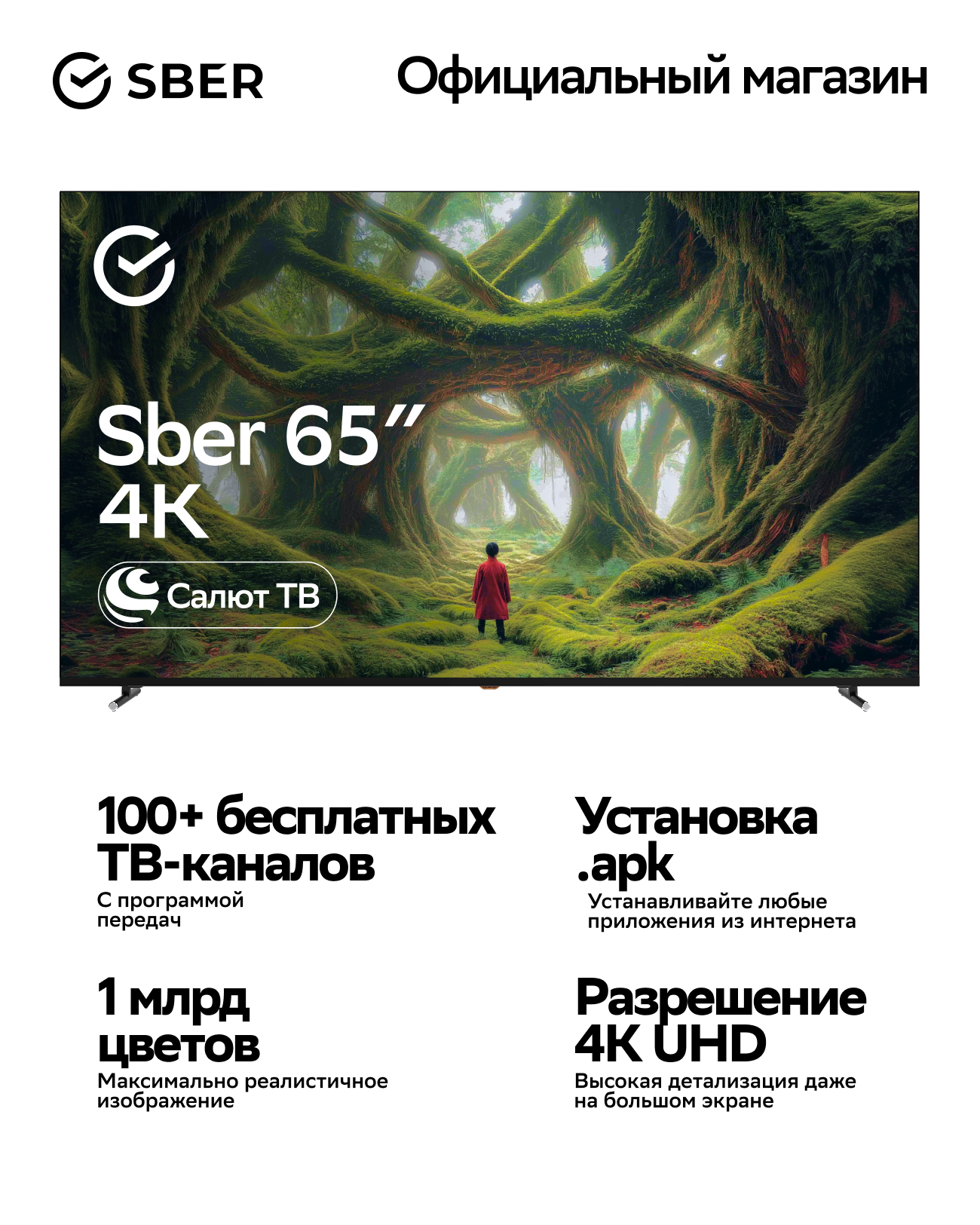 Купить Телевизор SBER SDX-65U4121, разрешение 4К, поддержка HDR, голосовое управление с доставкой по всей России. Телевизор SBER SDX-65U4121, разрешение 4К, поддержка HDR, голосовое управление: сравнение цен, характеристики, фото, актуальное наличие и цены.