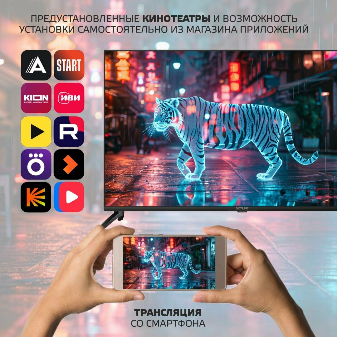 Телевизор SKYLINE 40LST6575 – это не просто "умный" телевизор! Новинка поставляется с операционной системой Яндекс ТВ и встроенным виртуальным ассистентом Алиса. Поэтому вы можете пользоваться всеми своими привычными подписками и получать доступ к любому контенту с максимальным комфортом. Управление телевизором возможно голосом, с ПДУ или с помощью любых других устройств ввода, совместимых со Smart TV. Телевизор с Алисой SKYLINE 40LST6575 - это настоящий медиацентр с широким выбором функций. Для подключения телевизора SKYLINE 40LST6575 к различным устройствам, а также для воспроизведения видео с внешних носителей предусмотрены разъемы USB и HDMI, а для подключения к сети интернет можно использовать беспроводной интерес Wi-Fi 2.4 ГГц или проводной подключение с разъёмом RJ-45 (витая пара).