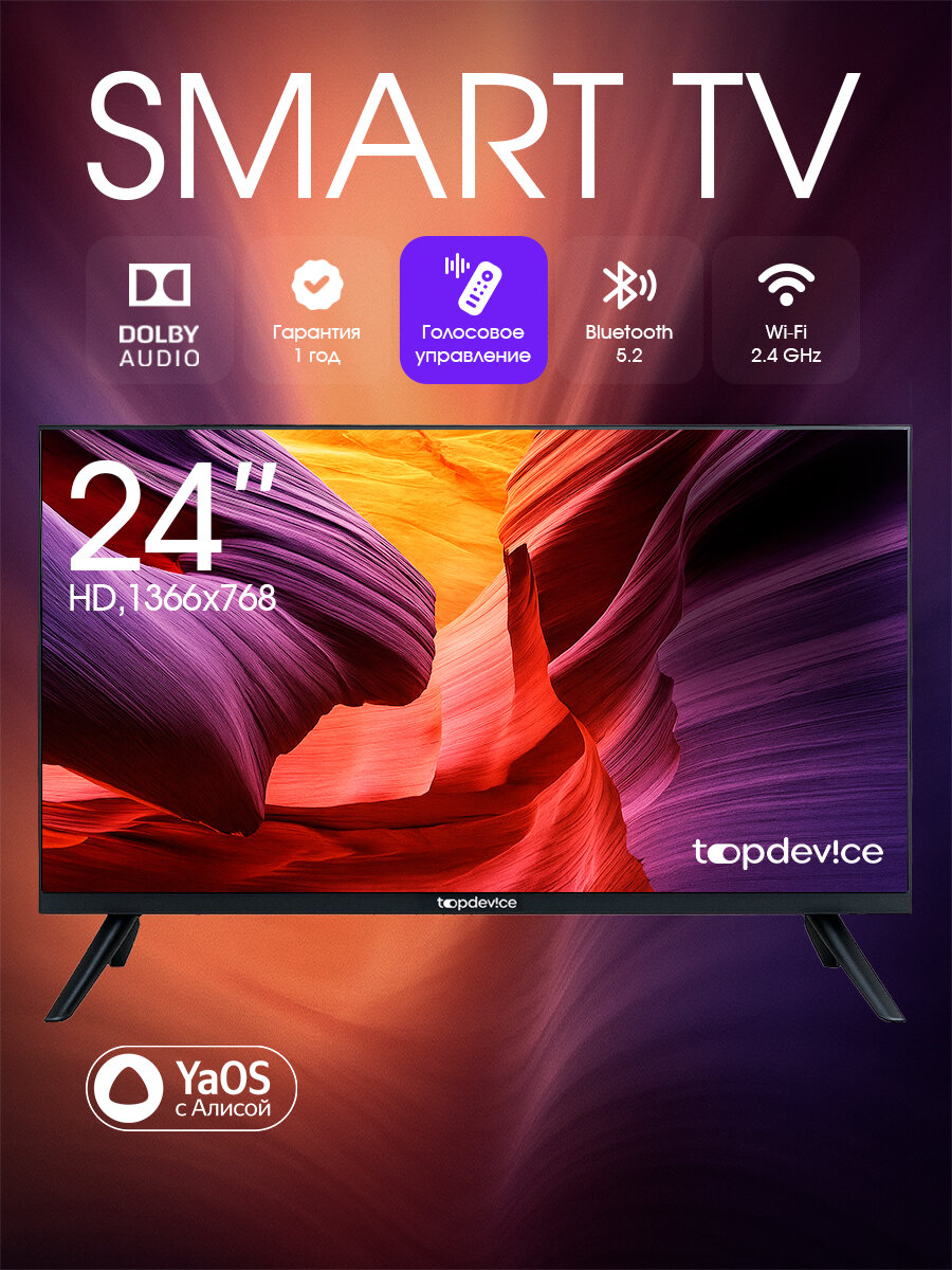 24″дюймовый Topdevice SMART TV YaOS — это сочетание компактности, функциональности и современных технологий.