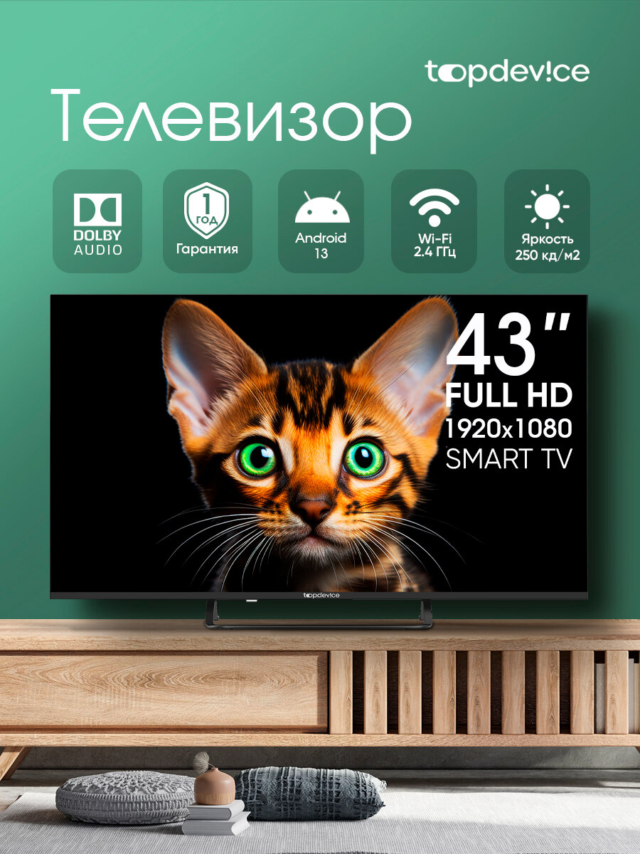 Телевизор Topdevice с ультратонкими рамками диагональ 43″ дюйма (TDTV43CS05F_BK), FHD, VA, WildRed, Dolby audio, черный: сравнение цен, характеристики, фото, актуальное наличие и цены.