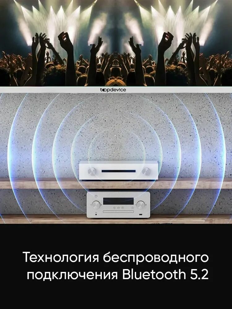 Телевизор LED TOPDEVICE TDTV43CS08U_WE - это 43-дюймовый безрамочный смарт-телевизор, который превращает ваше развлечение в настоящее наслаждение. Благодаря ультравысокой четкости UHD 4K, каждая сцена обретает яркость и реалистичность, позволяя вам погружаться в детали изображения и насыщенные цвета. Телевизор оснащен операционной системой Салют ТВ, которая предлагает легкий доступ к любимым стриминговым платформам. Телевизор имеет разрешение 3840x2160 4K и частоту обновления 60 Гц, что обеспечивает высокое качество изображения и плавность движения. Тип матрицы MVA и тип подсветки Direct LED гарантируют яркость и контрастность изображения. Телевизор поддерживает стандарты DVB-C, DVB-S2 и DVB-T2, что позволяет смотреть цифровое телевидение без дополнительных приставок. Телевизор оснащен разнообразными разъемами и интерфейсами, включая слоты CI/CI+, вход HDMI, Ethernet - RJ-45, USB Type-A, S/PDIF, антенный вход (RF), композитный видеовход, 3.5 мм и HDMI 2.0. Беспроводные интерфейсы Bluetooth и Wi-Fi обеспечивают удобное подключение к интернету и другим устройствам. Телевизор имеет встроенную память 8 ГБ и оперативную память 1.5 ГБ, что позволяет хранить и запускать большое количество приложений и медиафайлов. Телевизор оснащен пультом ДУ и управлением голосом, что делает его удобным и простым в использовании. Телевизор имеет размеры с ножками 956х214.5х611 мм и вес 6.5 кг, что позволяет легко установить его на стену или тумбу. Комплектация телевизора включает телевизор, пульт ДУ, сетевой кабель, батарейки и краткую инструкцию пользования.