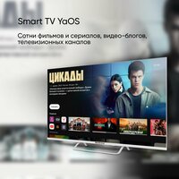 Телевизор SMART TV YaOS с диагональю 32 дюйма имеет стильный безрамочный дизайн и обеспечивает качественное изображение в HD. Технология Dolby audio гарантирует отличное звучание. Голосовой пульт управления поможет вам управлять телевизором с легкостью, используя голосовые команды. А встроенная в телевизор Алиса станет вашим незаменимым помощником - найдет нужный контент, подскажет погоду или поможет с управлением умного дома. Благодаря Bluetooth 5.0 и подключению Wi-Fi 2.4 GHz вы легко сможете настроить соединение с интернетом и другими устройствами. Телевизор оснащен 1 Гб оперативной памяти и 8 Гб внутреннего накопителя, что позволяет сохранить большое количество контента. Технические характеристики: Безрамочный корпус SMART TV YaOS Диагональ 32 Разрешение HD Dolby audio BT 5.0 Wi-Fi 2.4 GHz Оперативная память, 1 Гб Память внутреннего накопителя, 8 Гб ВТ пульт с голосовым управлением