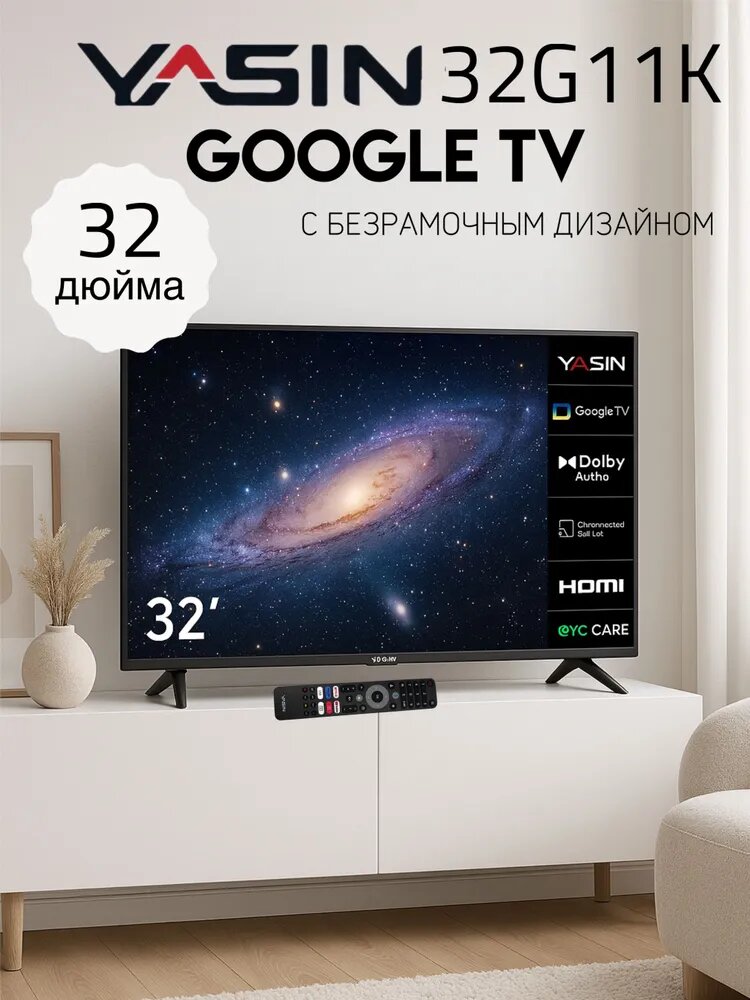 Телевизор смарт 32 дюйма YASIN 32G11K HD GoogleTV: сравнение цен, характеристики, фото, актуальное наличие и цены.