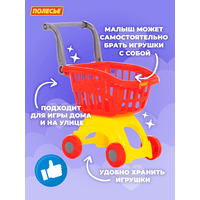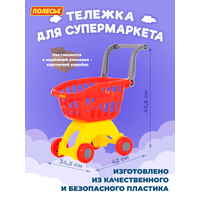 Тележка для маркета "Мини" (v2). В комплекте 3 детали для сборки тележки. Размеры тележки в собранном виде ДхШхВ: 42х24.5х47.5 см. Размер корзины ДхШхВ: 30х24.5х17.5 см. Материал: полипропилен. Индивидуальная упаковка: сетка. Соответствует требованиям безопасности продукции. Для детей от 1.5 лет.