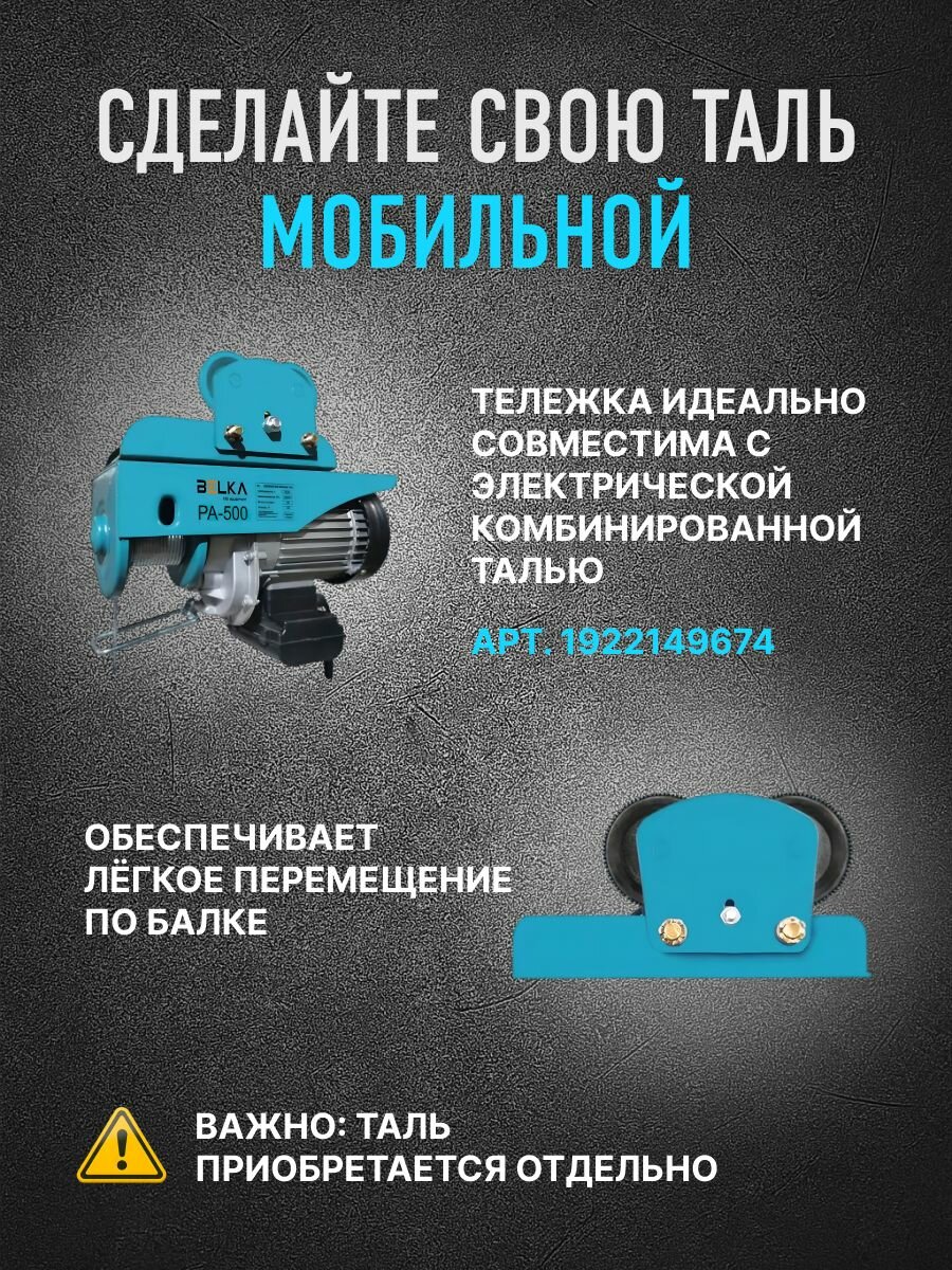 Тележка для мини тали электрической комбинированной Без пульта BelKA PA-500 для талей до г/п 500кг, 220в: сравнение цен, характеристики, фото, актуальное наличие и цены.