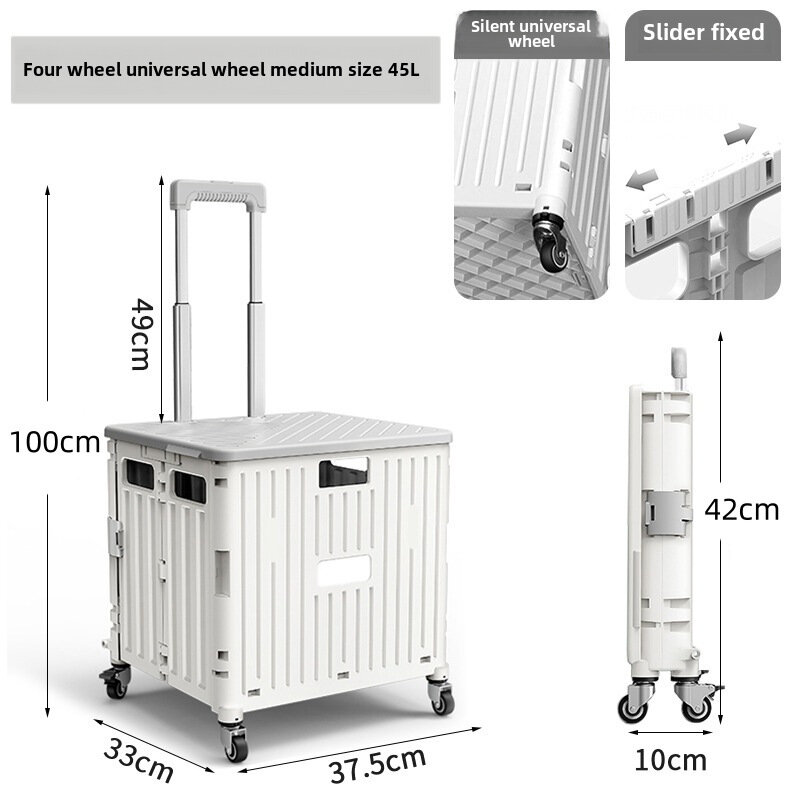 Прочный материал: Изготовленная из прочного пластика, эта тележка рассчитана на большие нагрузки и регулярное использование, что гарантирует ее долговечность.