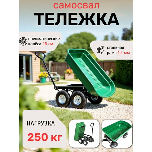 Тележка для сада 4-колесная с кузовом на 80 литров - незаменимый помощник в саду и на приусадебном участке. Тачка-самосвал - это удобный и функциональный инструмент, обеспечивающий комфорт при выполнении различных садовых работ, таких как: перевозка урожая, удобрений и инструментов.