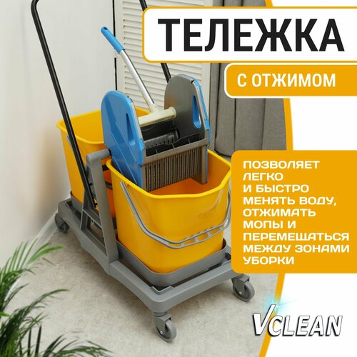 Тележка для уборки на колесах с отжимом и двумя ведрами Vclean