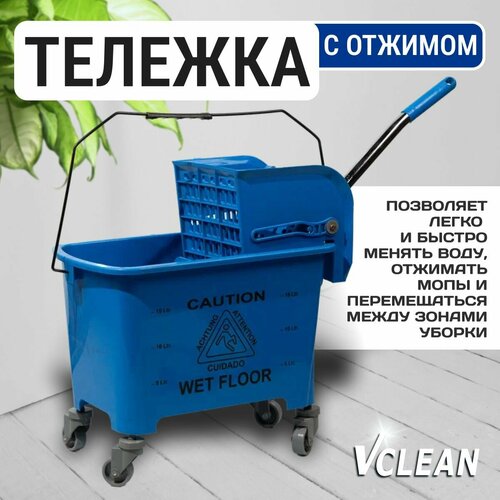 Тележка для уборки на колесах с отжимом и ведром с перегородкой Vclean, синий: сравнение цен, характеристики, фото, актуальное наличие и цены.