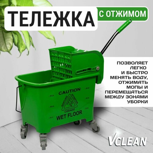 Тележка для уборки на колесах с отжимом и ведром с перегородкой Vclean, зеленый: сравнение цен, характеристики, фото, актуальное наличие и цены.