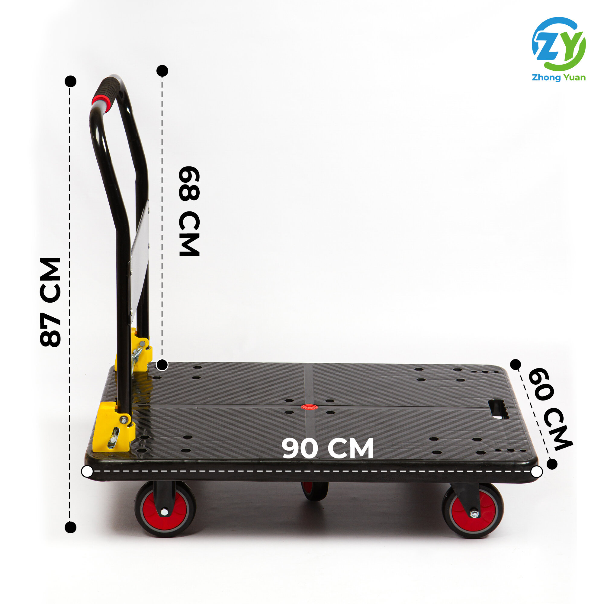 Купить Тележка грузовая складная Zhong Yuan, 5 колес, до 600кг, 90х60см, черный цвет с доставкой по всей России.