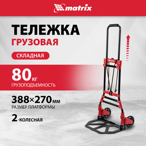 Складная хозяйственная 2-колесная тележка Matrix 98207 со стальной рамой предназначена для перемещения грузов массой до 80 кг. Телескопическая рукоятка позволяет регулировать высоту тележки в соответствии с ростом пользователя. Для размещения груза предусмотрена платформа размером 388 x 270 мм.