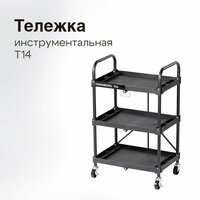 Тележка инструментальная на колесах для автосервиса, T14 Тележка инструментальная на колесах для автосервиса предназначена для удобства временного хранения и перемещения небольших деталей и инструмента, а также организации передвижного рабочего места в процессе работ. Особая конструкция из металлических стоек и пластиковых полок позволяет организовать комфортное рабочее пространство и предохраняет от случайных царапин на кузове автомобиля в процессе работ. Такой способ хранения позволит вам организовать свои автодетали таким образом, чтобы они всегда были под рукой.