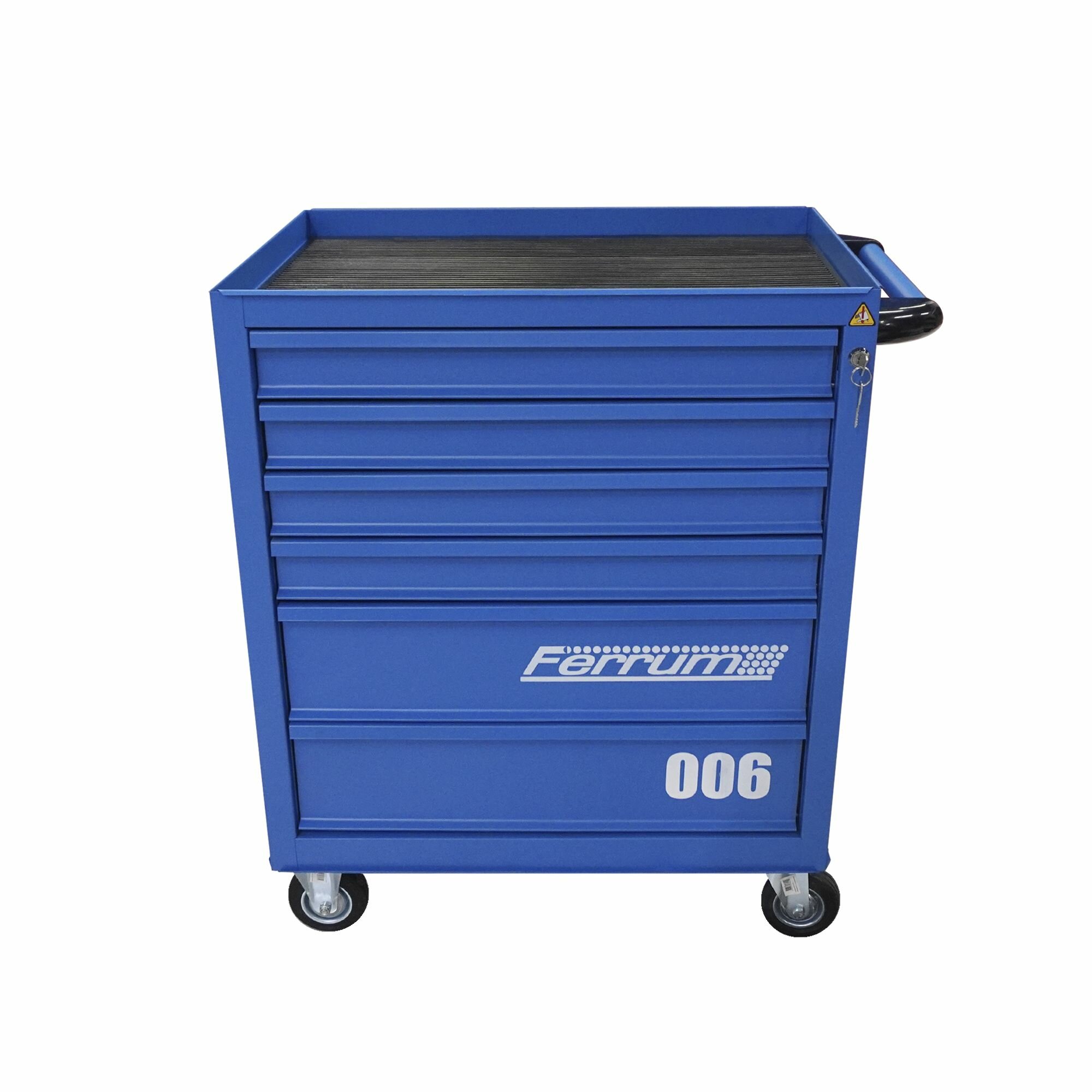 Инструментальная тележка FERRUM с 6 ящиками 02.006-5015 предназначена для хранения и транспортировки различных инструментов, крепежа и аксессуаров. Технические характеристики: • Ширина 745 мм • Глубина 465 мм • Высота 825 мм • Вес 44 кг • Допустимая равно-распределенная нагрузка: 200 кг • Тип тележки: с ящиками • Нагрузка на ящик: 50 кг