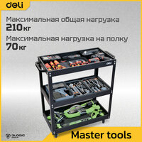 Deli Тележка инструментальная Deli DL433023, трехсекционная на колесах, до 210 кг, черный (700мм, 350мм, 760мм): сравнение цен, характеристики, фото, актуальное наличие и цены.