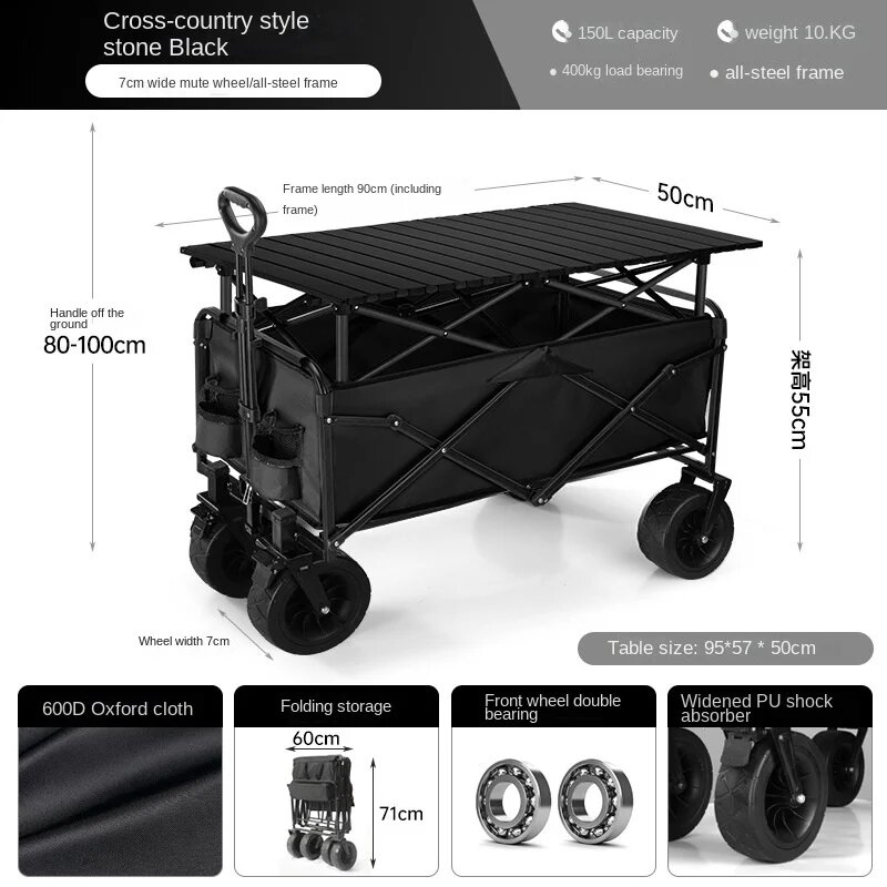 Тележка K-star для кемпинга на открытом воздухе, детская складная тележка с колесами для внедорожников, маленькая тележка, новинка 2024, лидер продаж, Прямая поставка, Черный