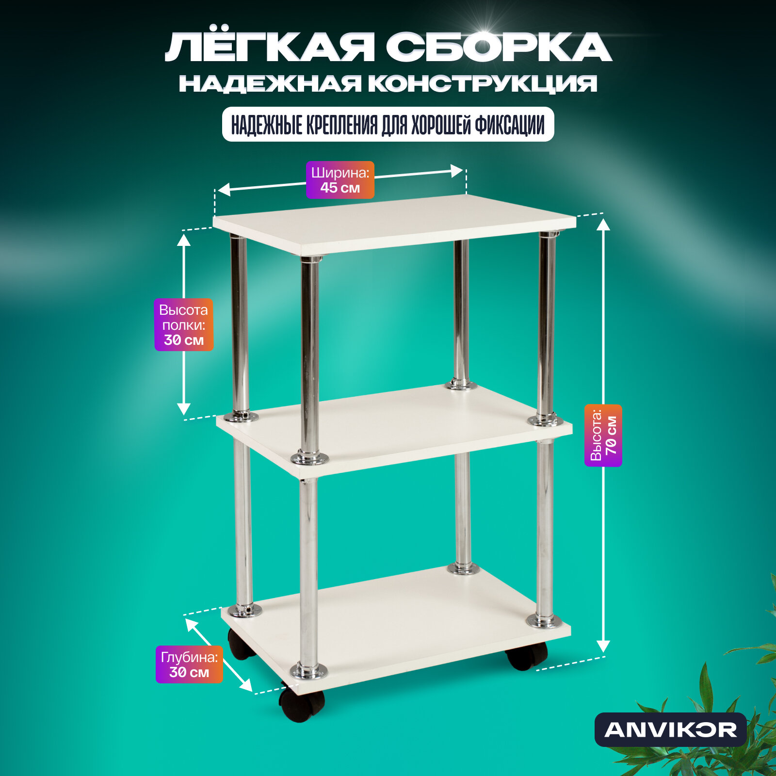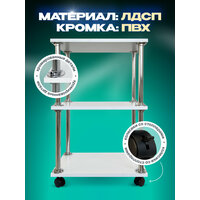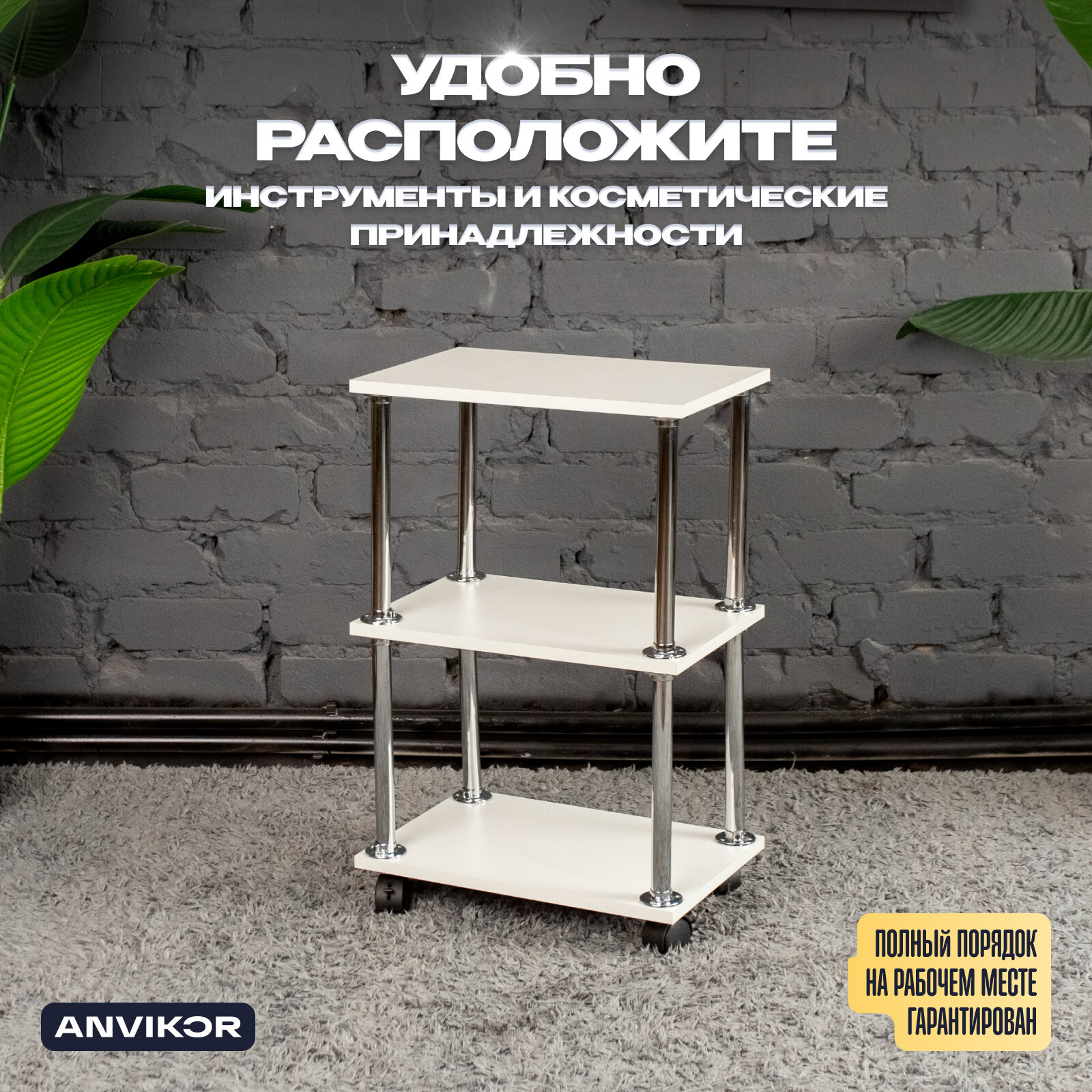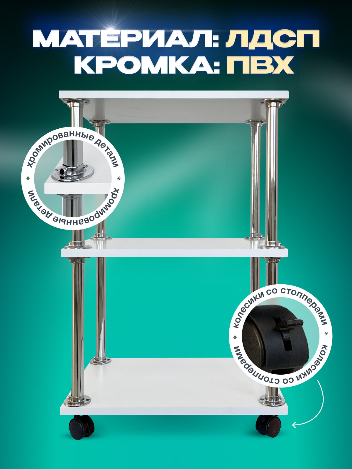 Тележка косметологическая этажерка ЛДСП с колесиками 3 полки для парикмахера Кама белый: сравнение цен, характеристики, фото, актуальное наличие и цены.