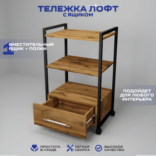 Купить Тележка косметологическая с 1 ящиком, Уютный мастер, черный металл дуб вотан с доставкой по всей России.